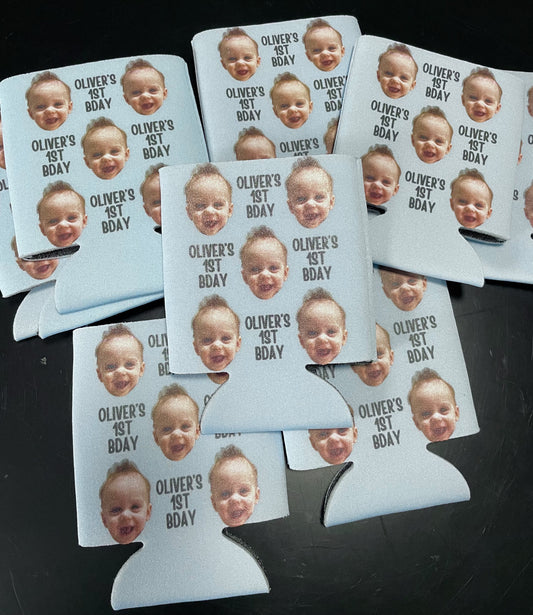 Custom First Birthday Can Coolers, Baby Boy or Baby Girl Face Photo Beer CooliesRegular price From $5.00 USDRegular priceUnit price / per-