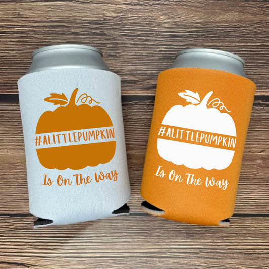 Custom Fall Theme Baby Shower Can Coolers, A Little Pumpkin Is On The Way Coolies