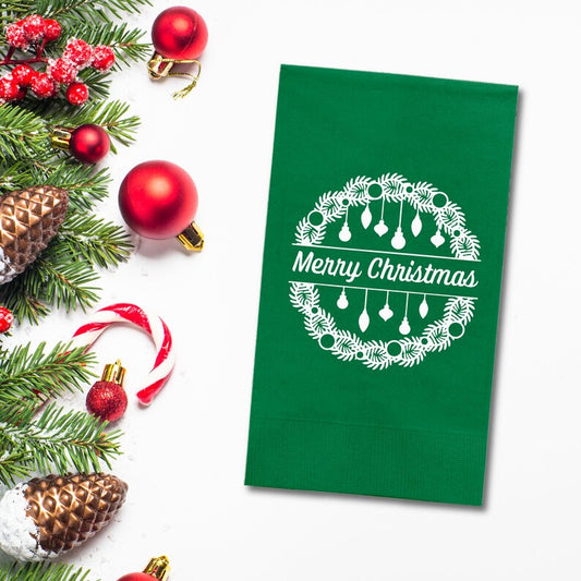 • Christmas Napkins, Merry Christmas Lantern Green, Red and White Paper Dinner Napkins