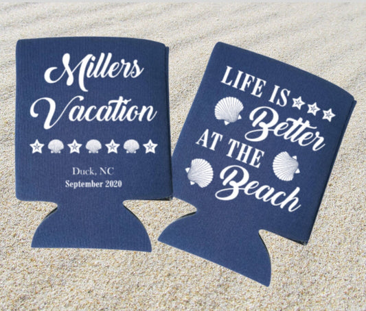 Custom Beach Vacation Can Coolers, Life Is Better At The Beach, Family Trip CooliesRegular price From $5.00 USDRegular priceUnit price / per-