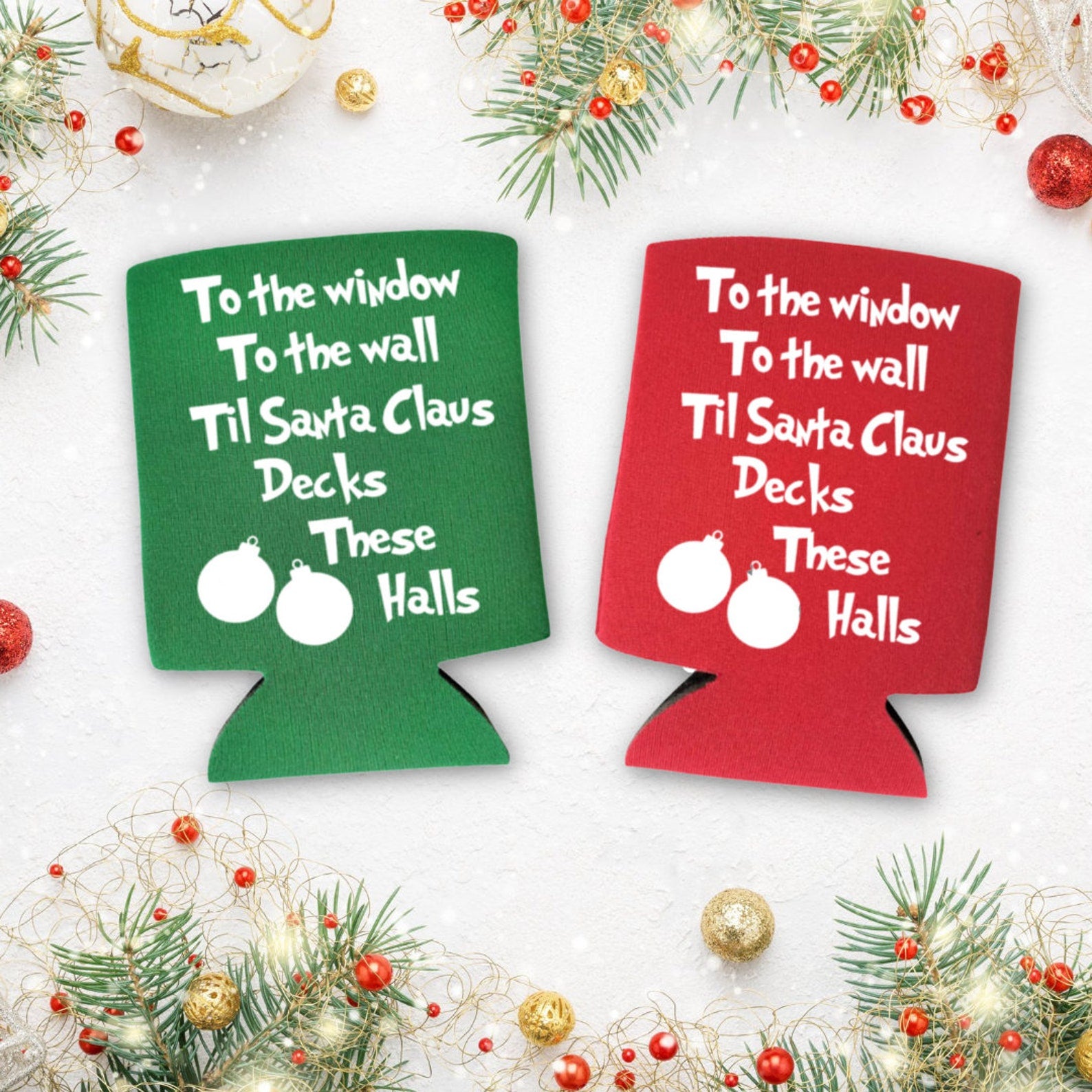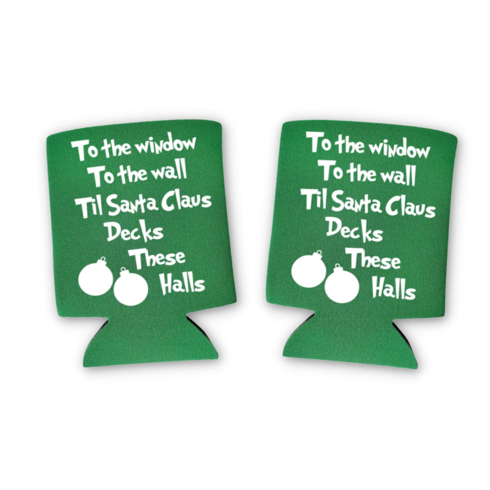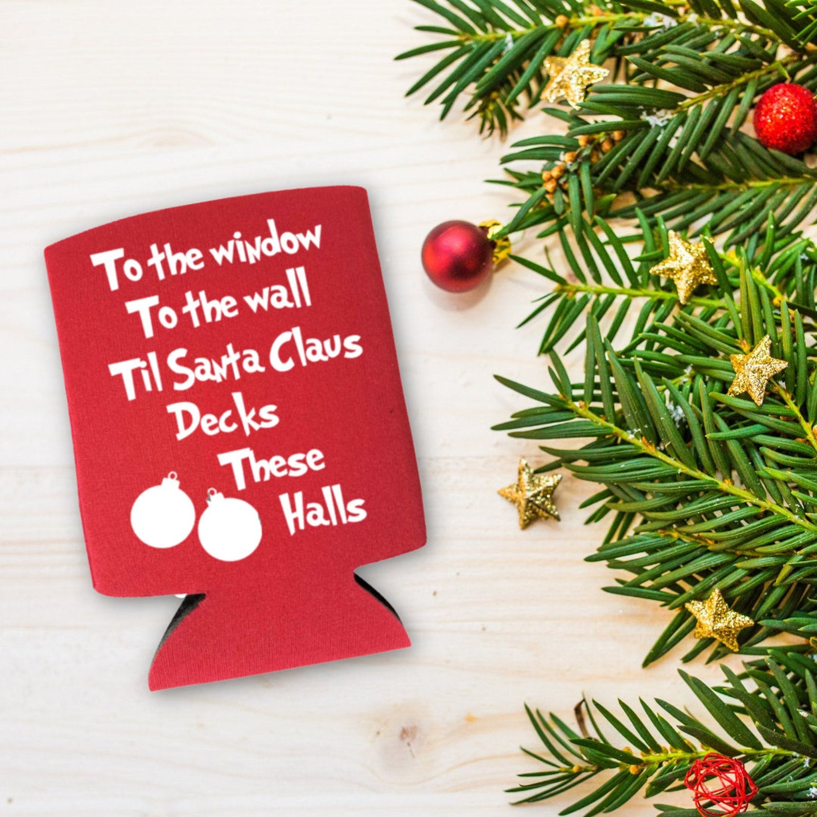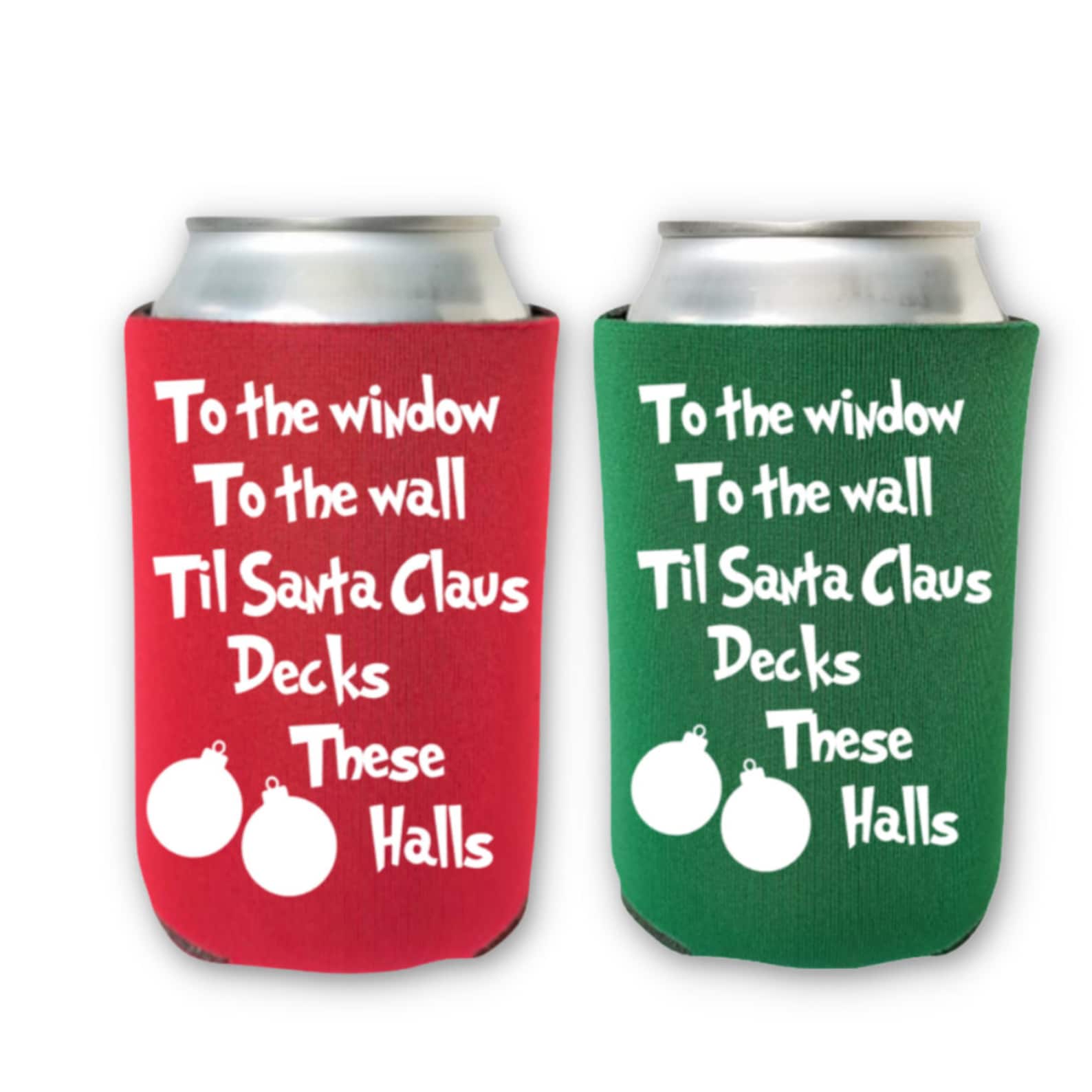 Christmas Can Coolers, To The Window To The Wall Til Santa Claus Decks These Halls Beer Coolies