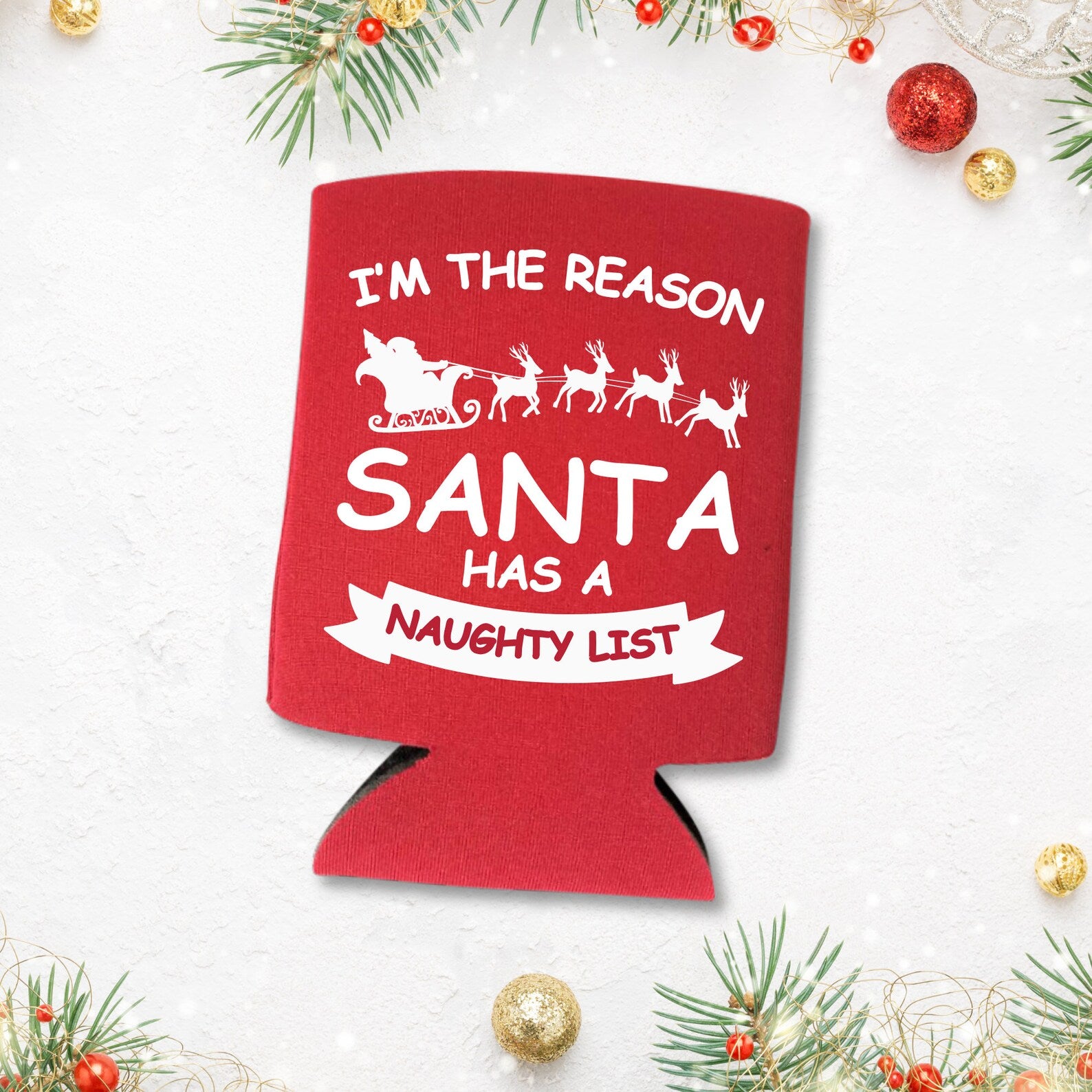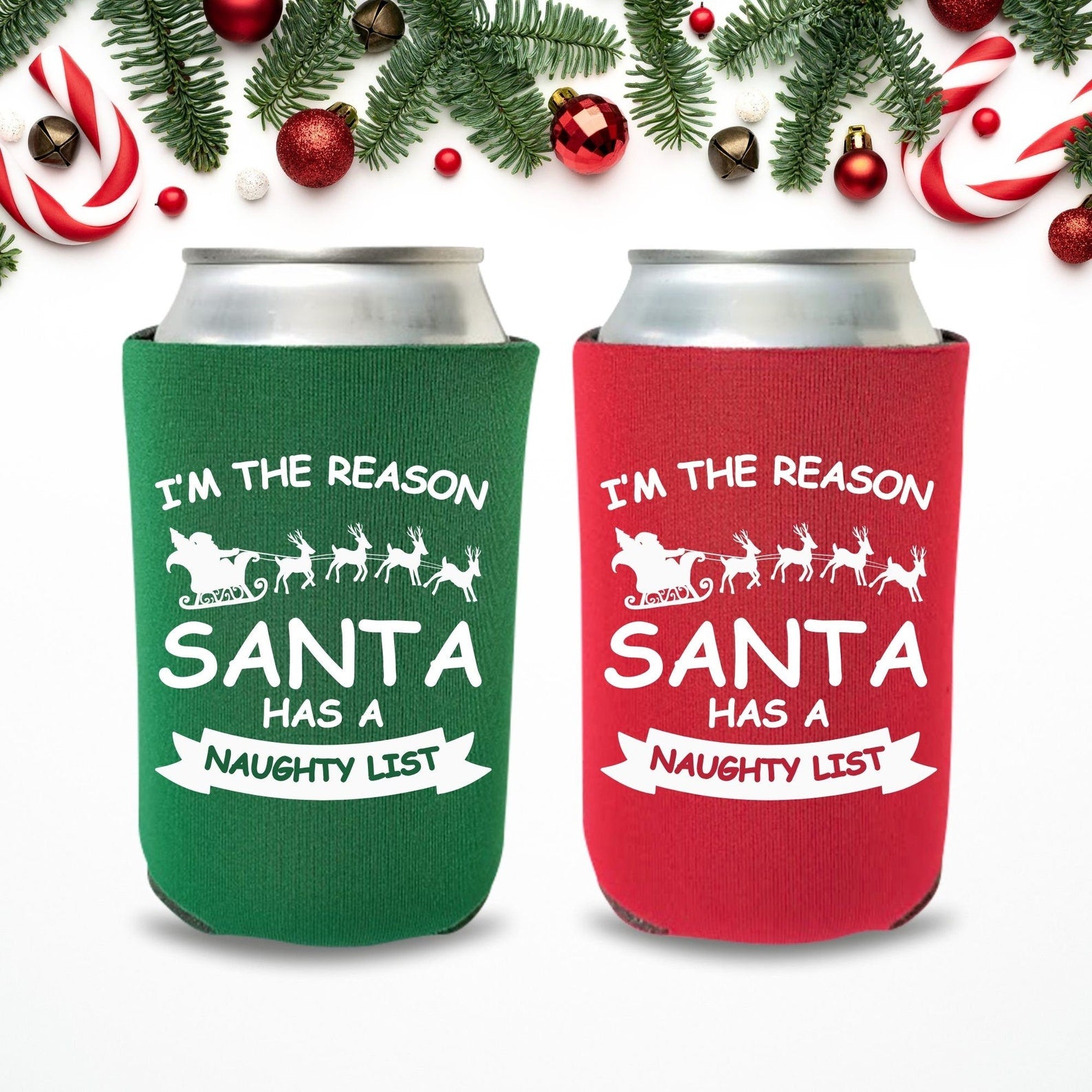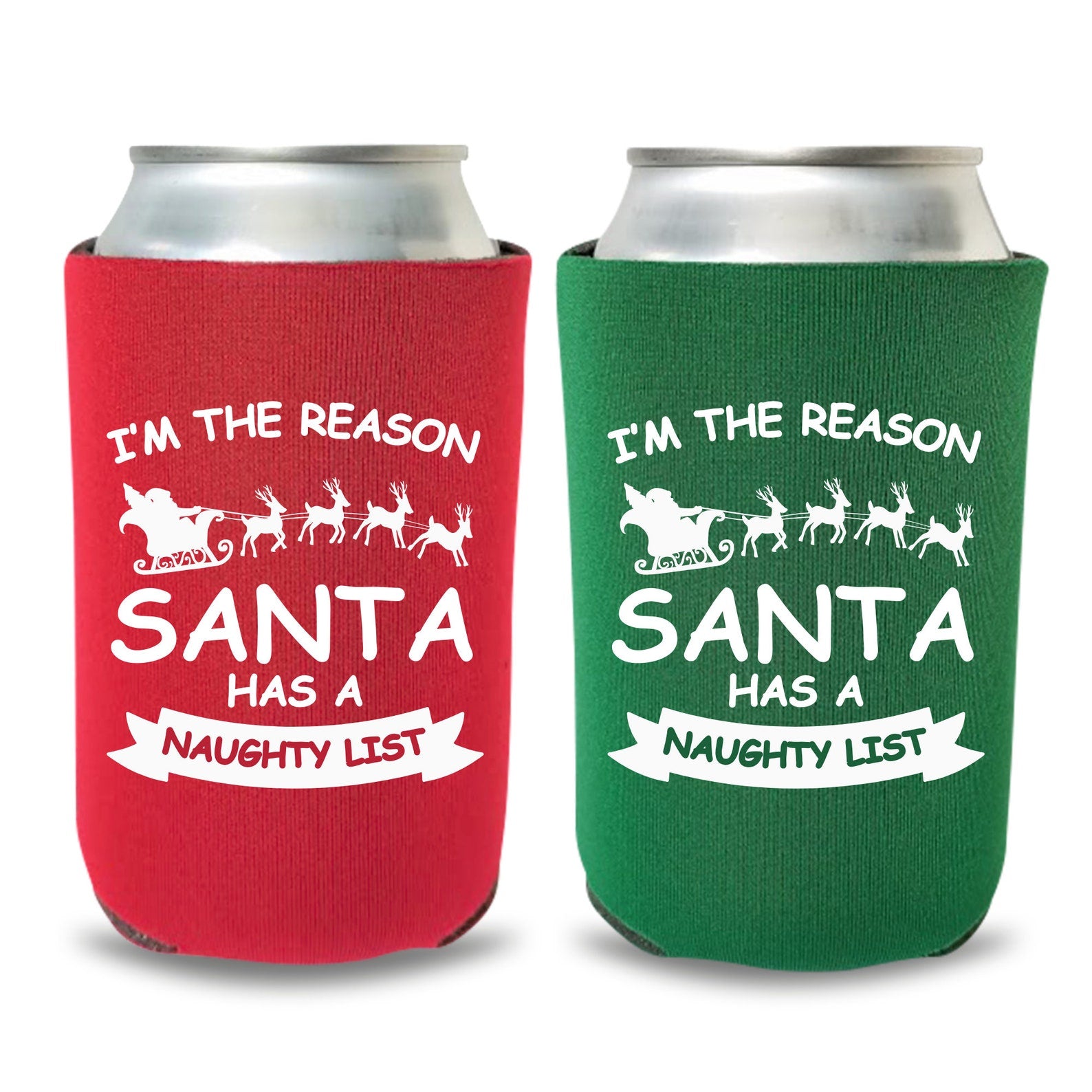 Christmas Can Coolers, I'm The Reason Santa Has A Naughty List Beer Coolies