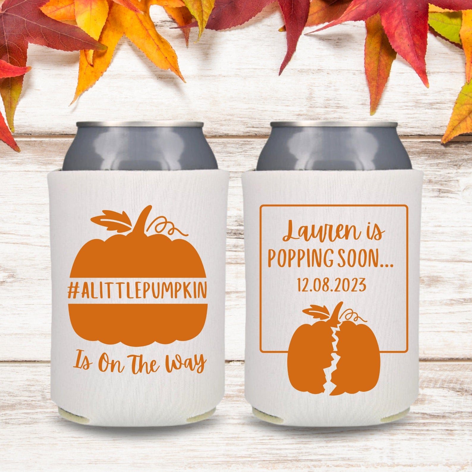 Custom Fall Theme Baby Shower Can Coolers, A Little Pumpkin Is On The Way Coolies