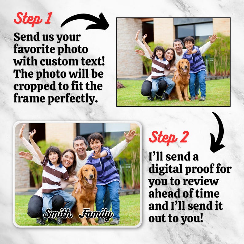 Brighten up your desk with our "Custom Family Photo Mouse Pad!" This custom mouse pad is the perfect way to keep your family close while you’re busy working. With your favorite picture and name printed on this mousepad, you'll be smiling with every click!