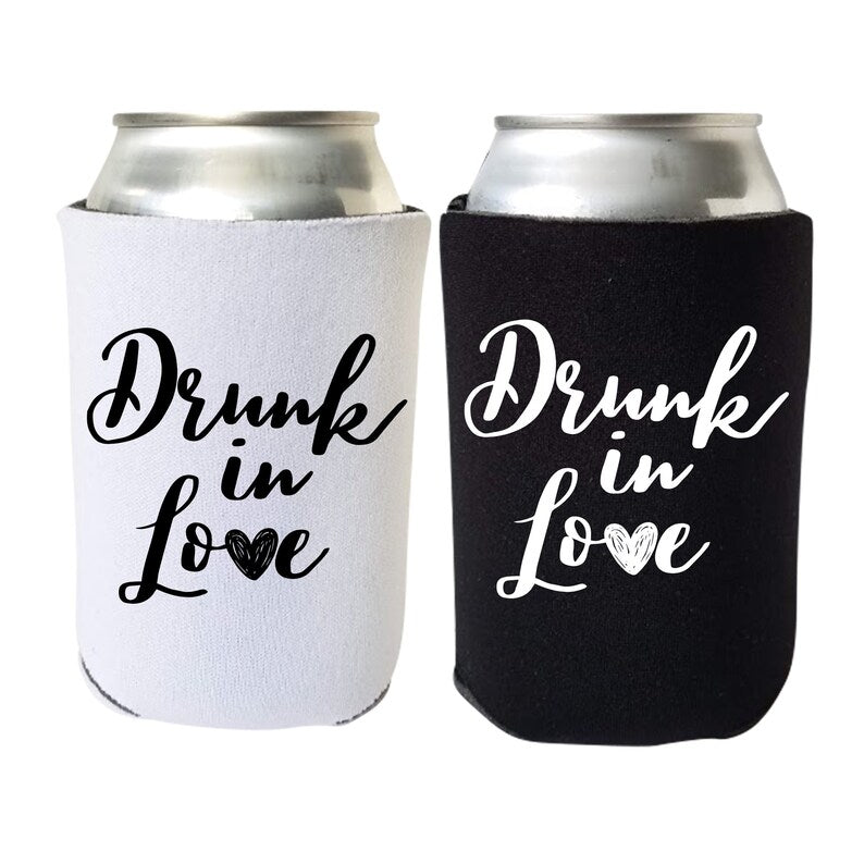 Custom Wedding Can Coolers, Drunk In Love Coolies