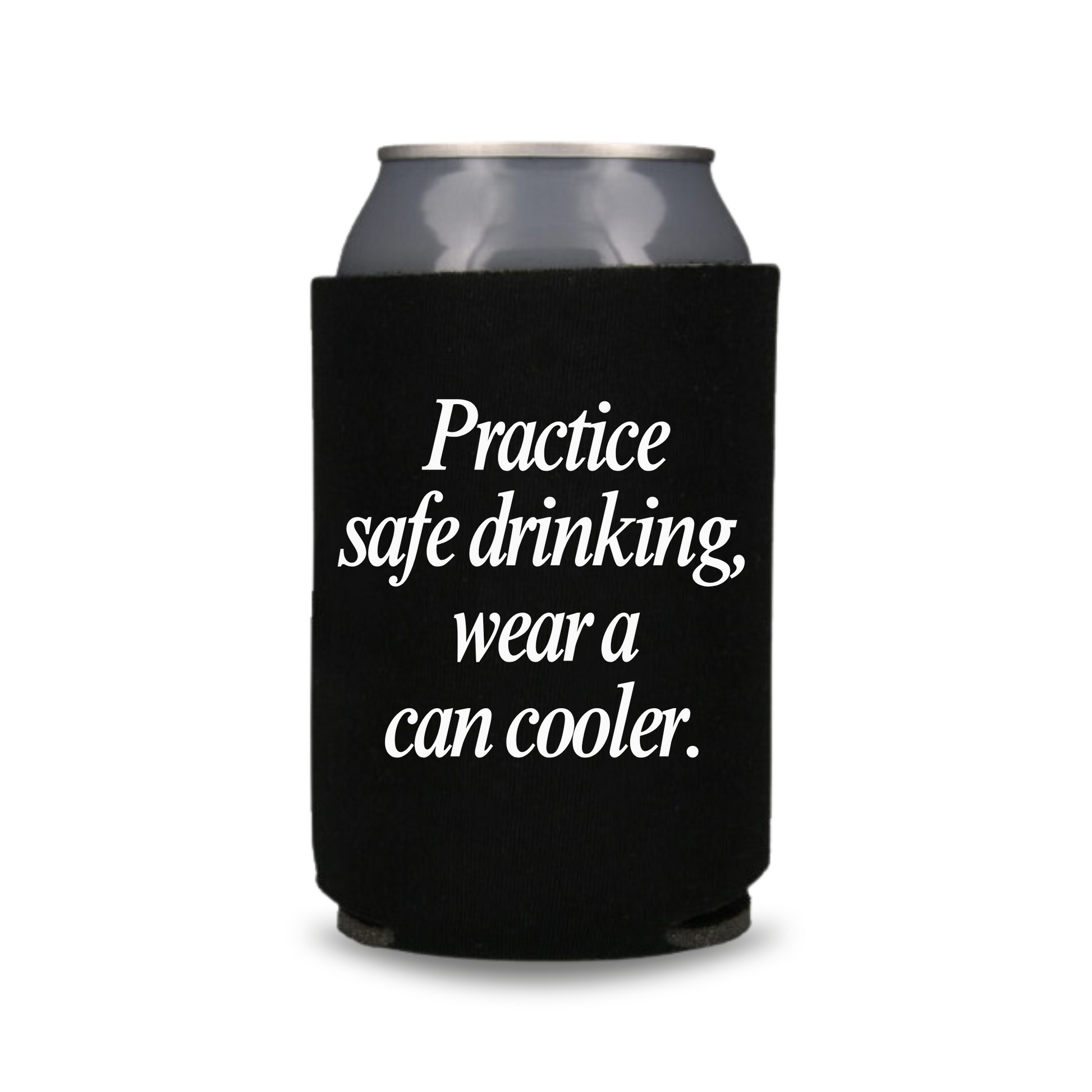 -- "PRACTICE SAFE DRINKING, WEAR A CAN COOLER" FUNNY CAN COOLER - The perfect gift for anyone who loves their can of beer!