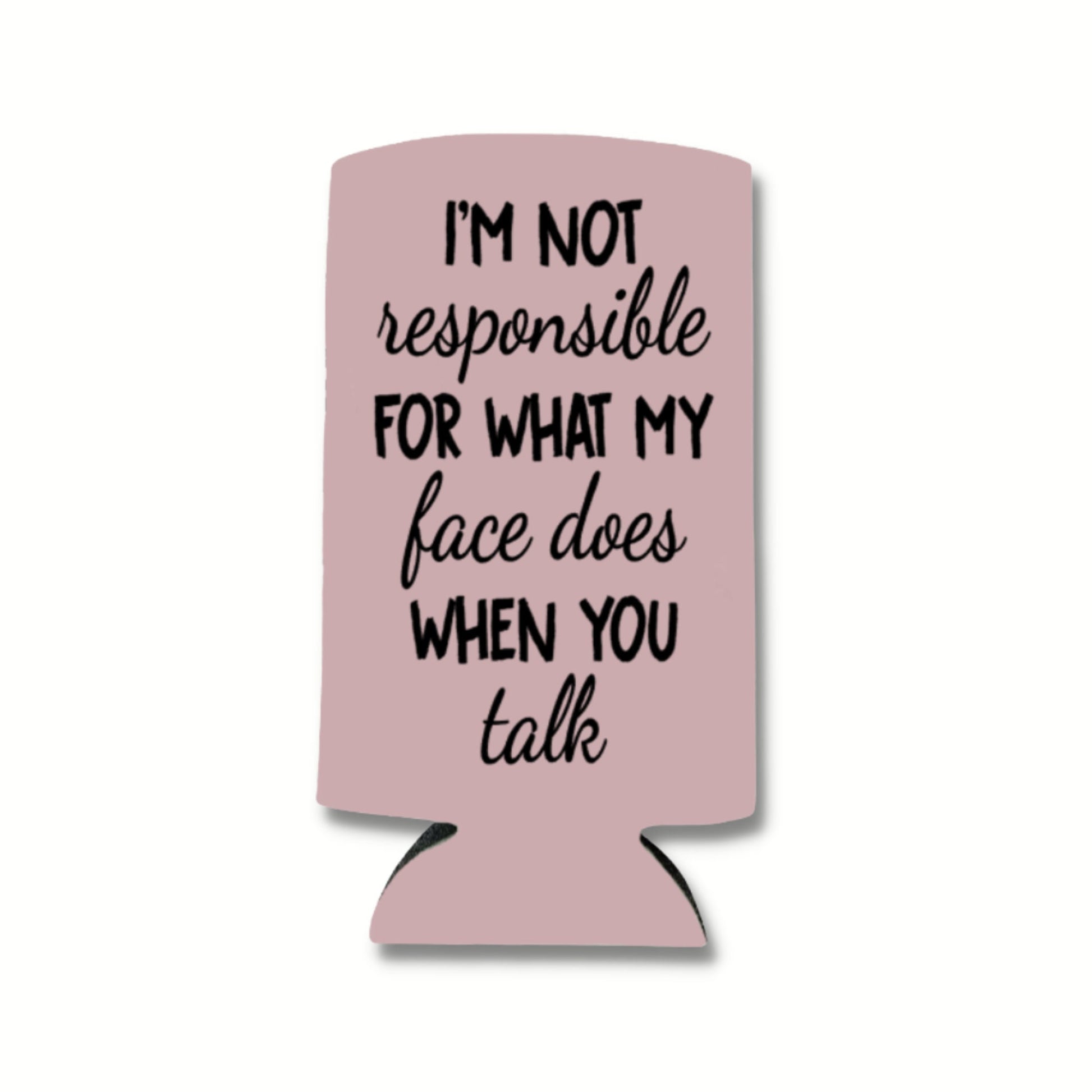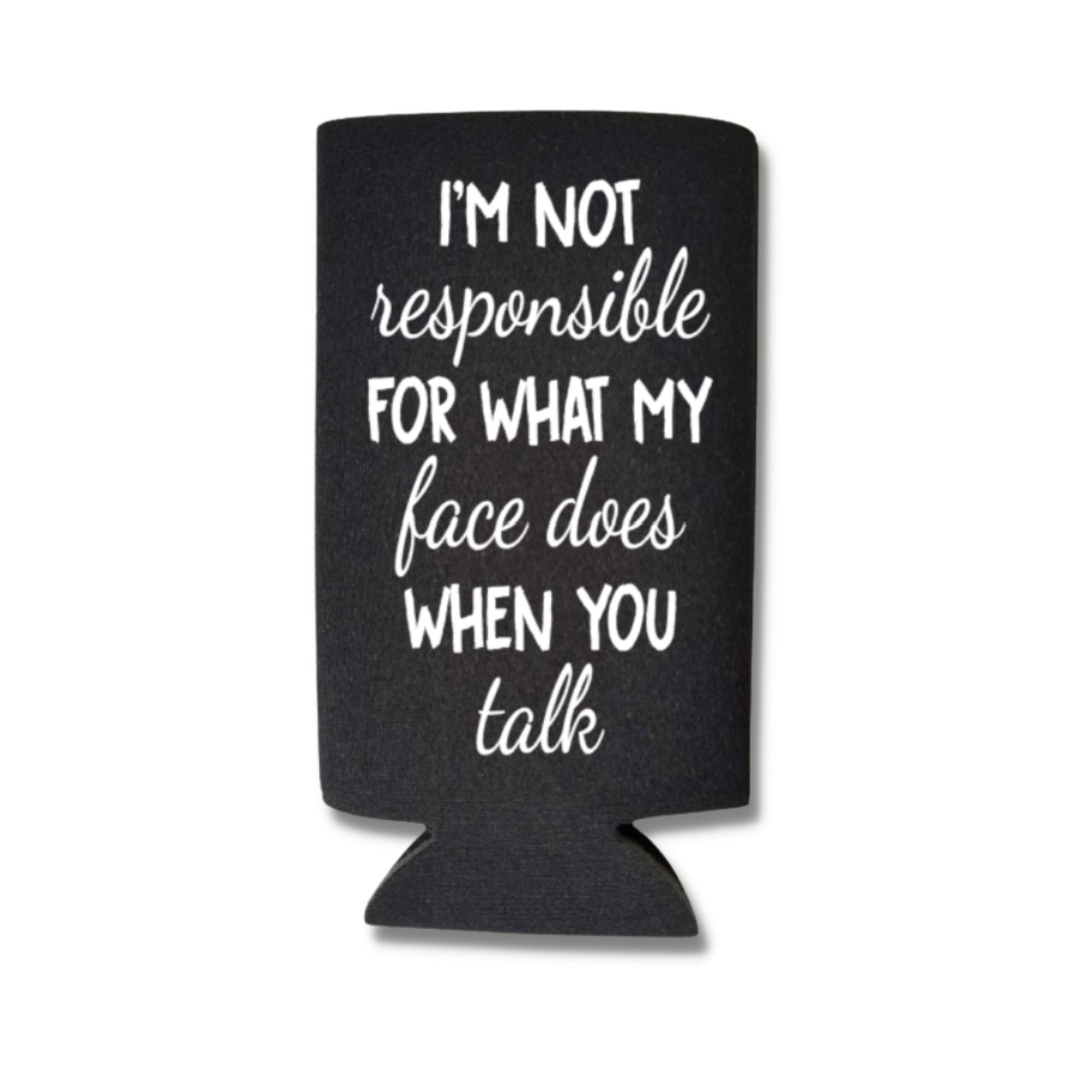 -- "I'M NOT RESPONSIBLE FOR WHAT MY FACE DOES WHEN YOU TALK" FUNNY SLIM CAN COOLER - The perfect gift for anyone who loves their spiked seltzer!